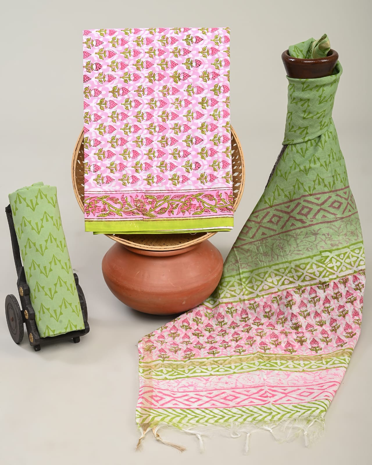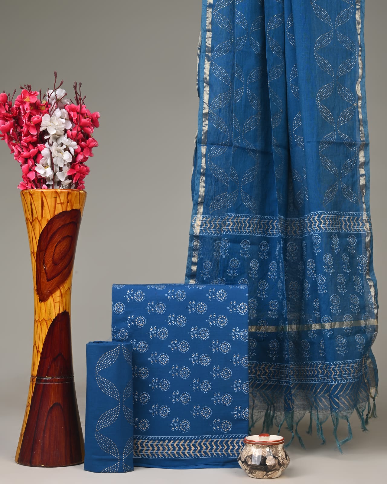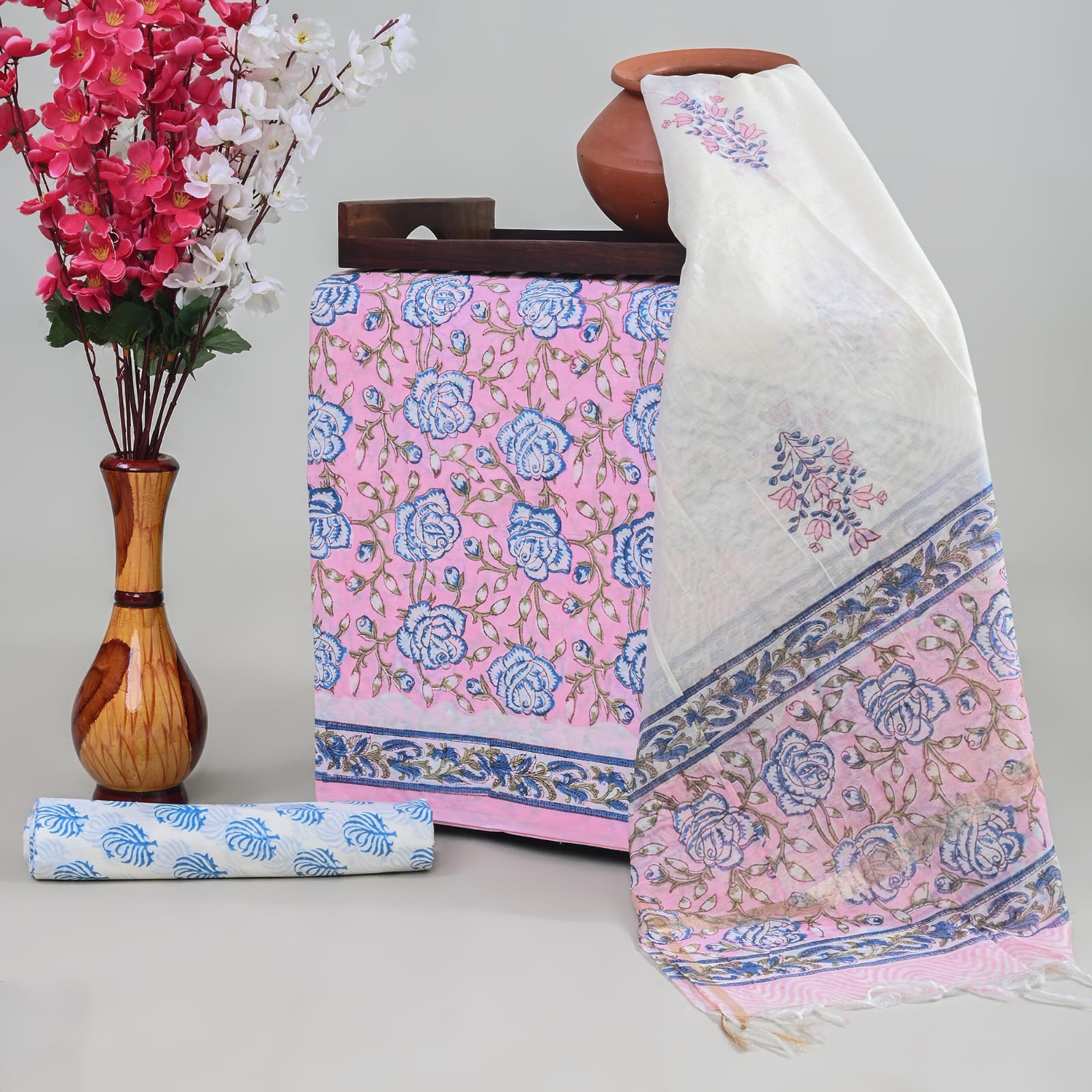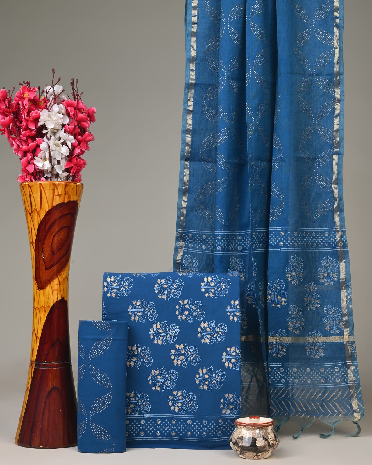 Chanderi Silk Suit Material Wholesale – Handblock Printed Cotton with Silk Dupatta