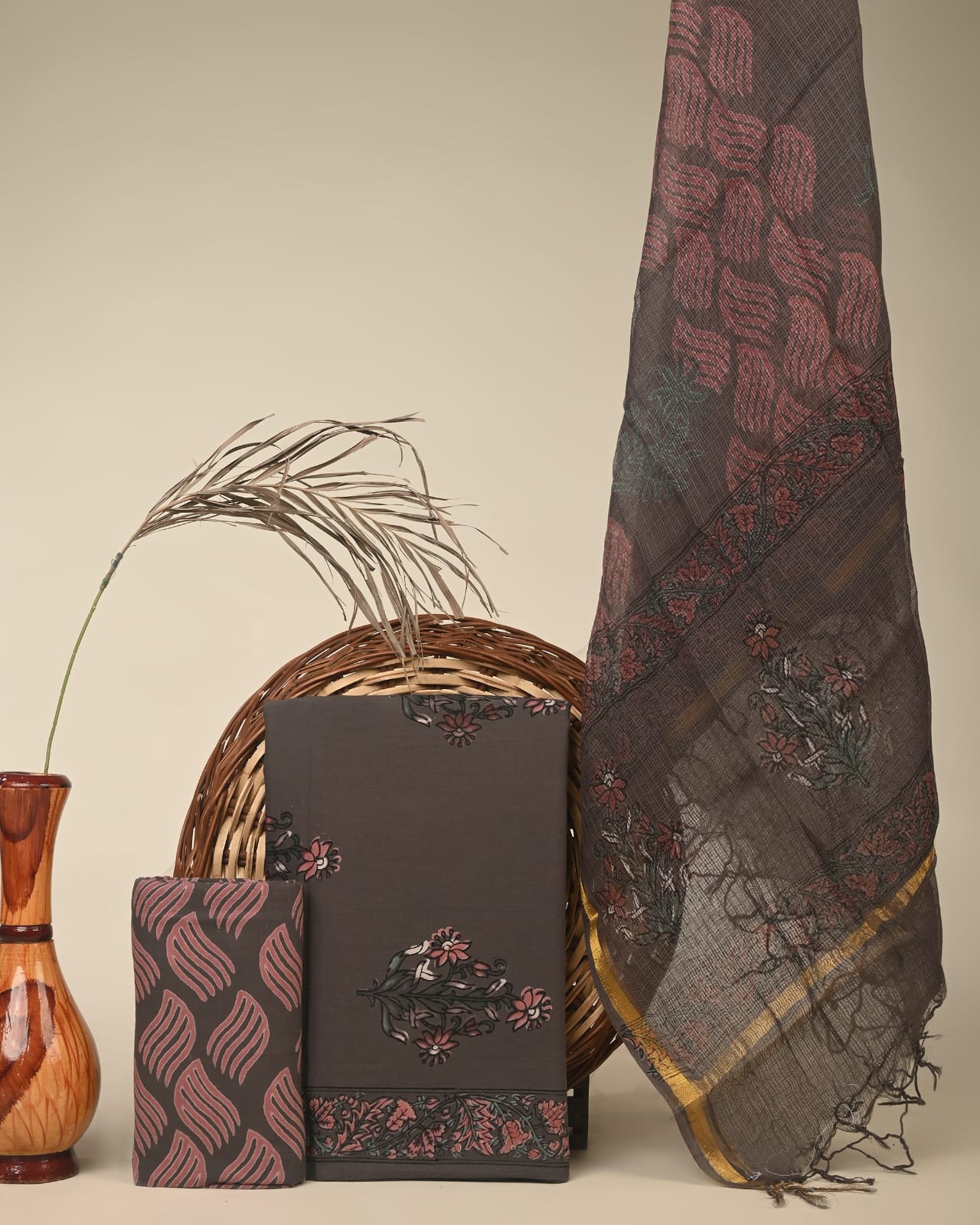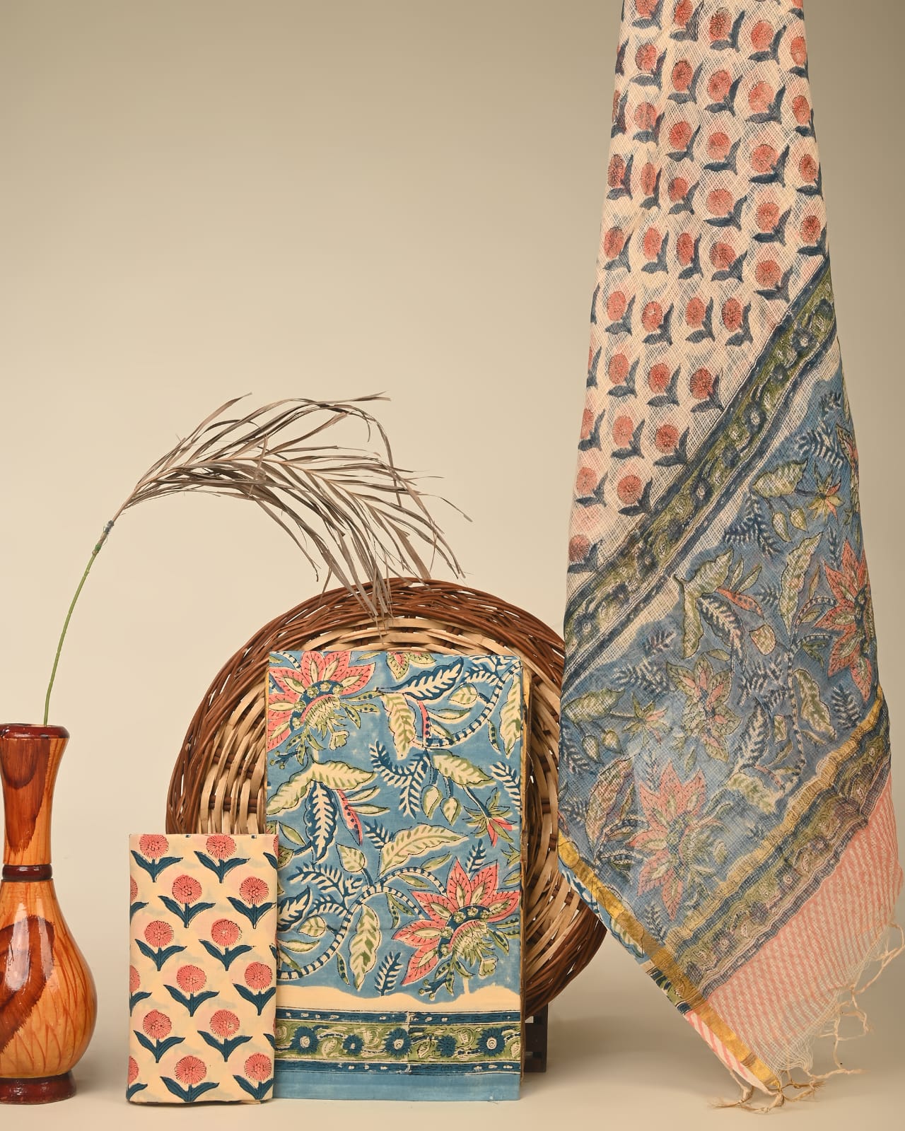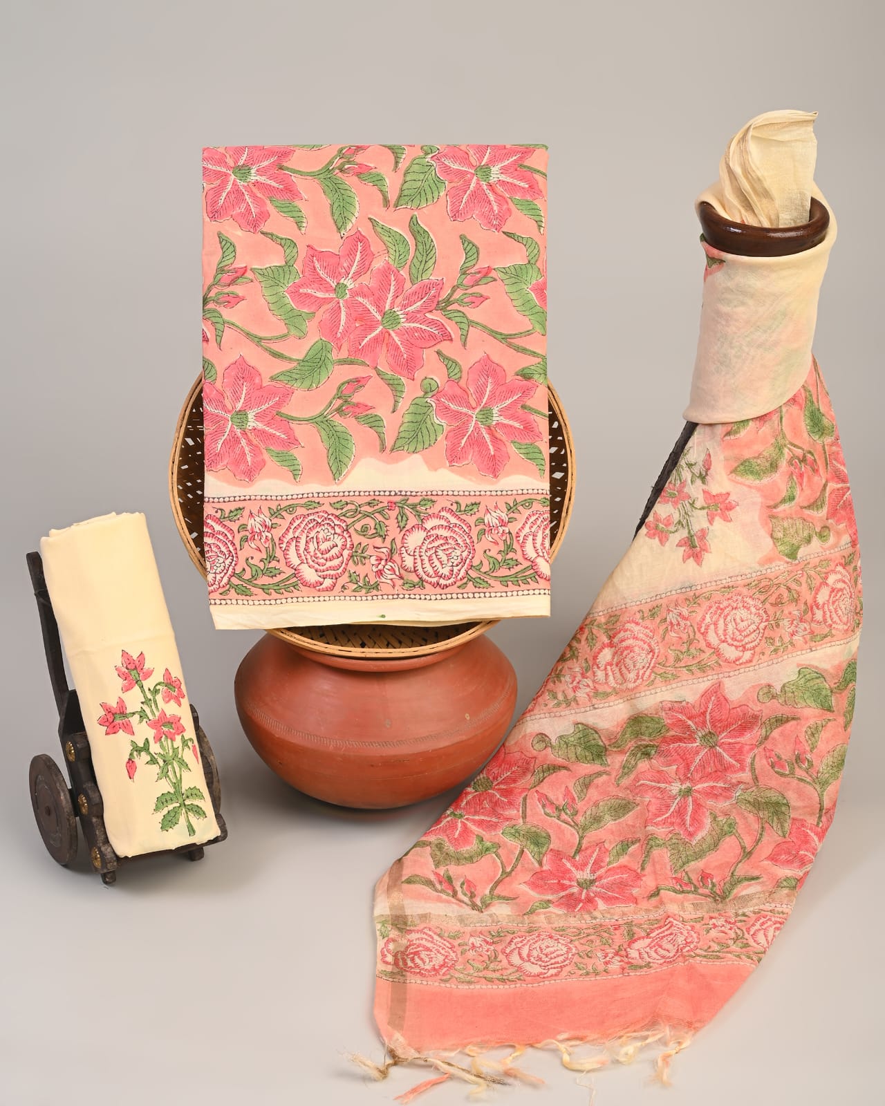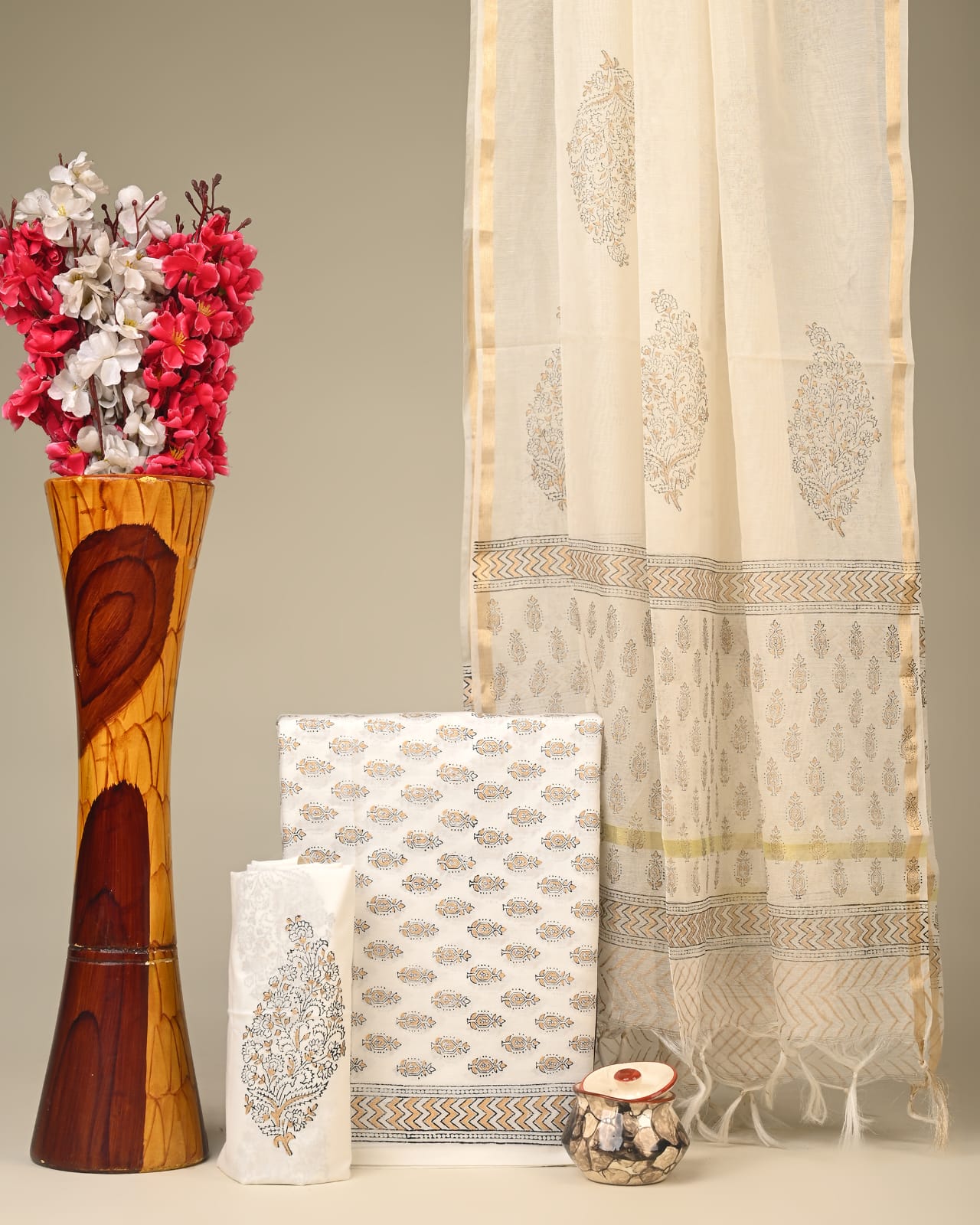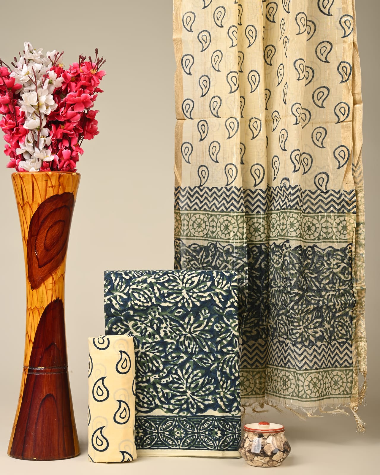 Chanderi Silk Suit Material Wholesale – Handblock Printed Cotton with Silk Dupatta