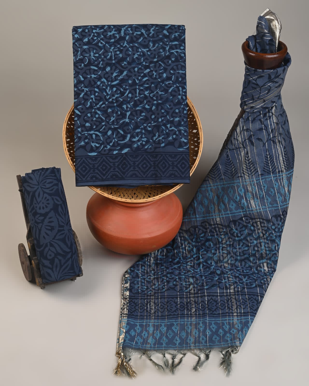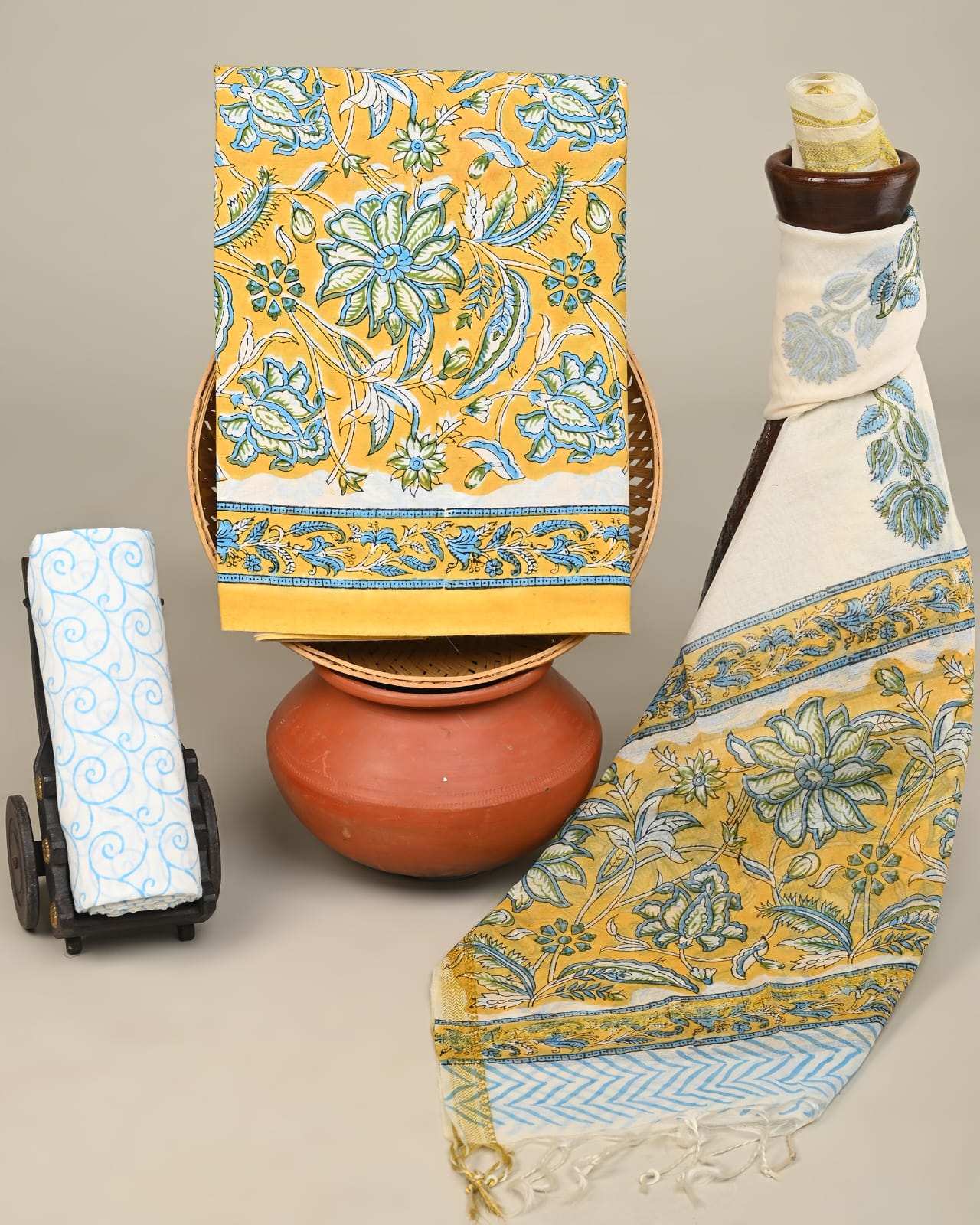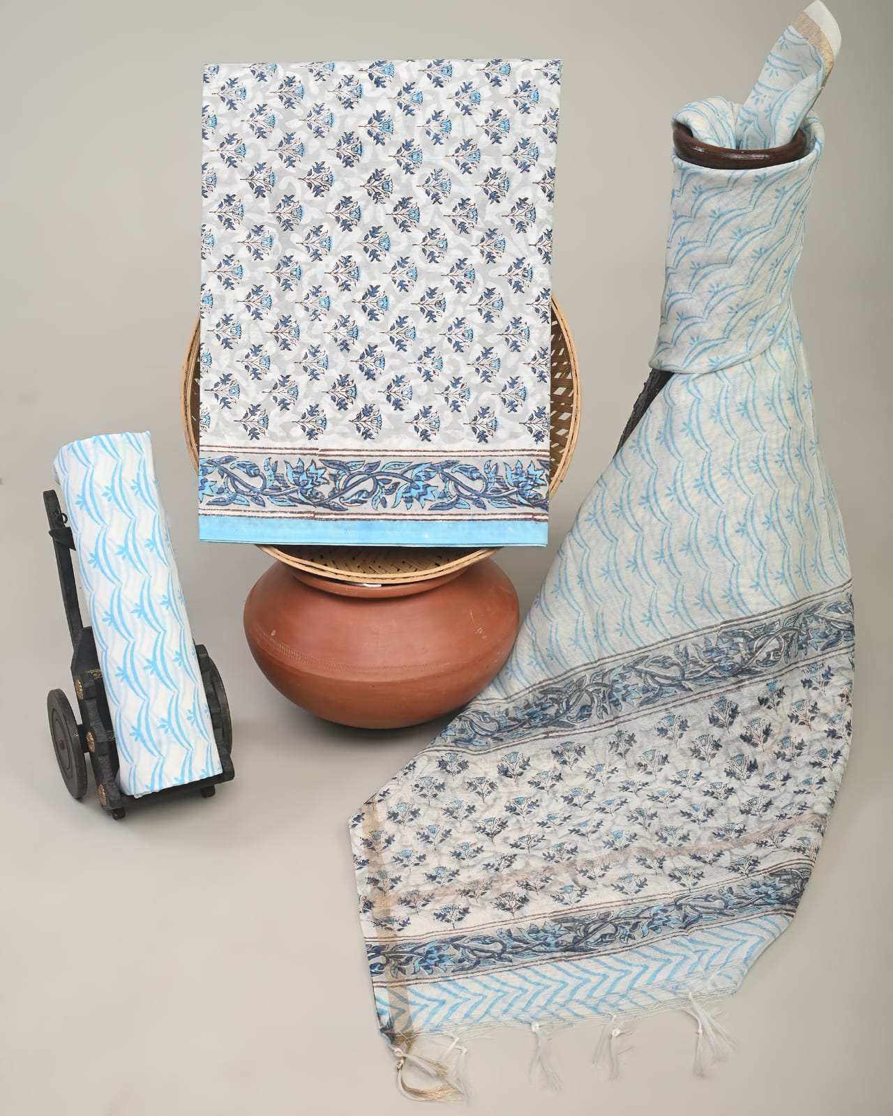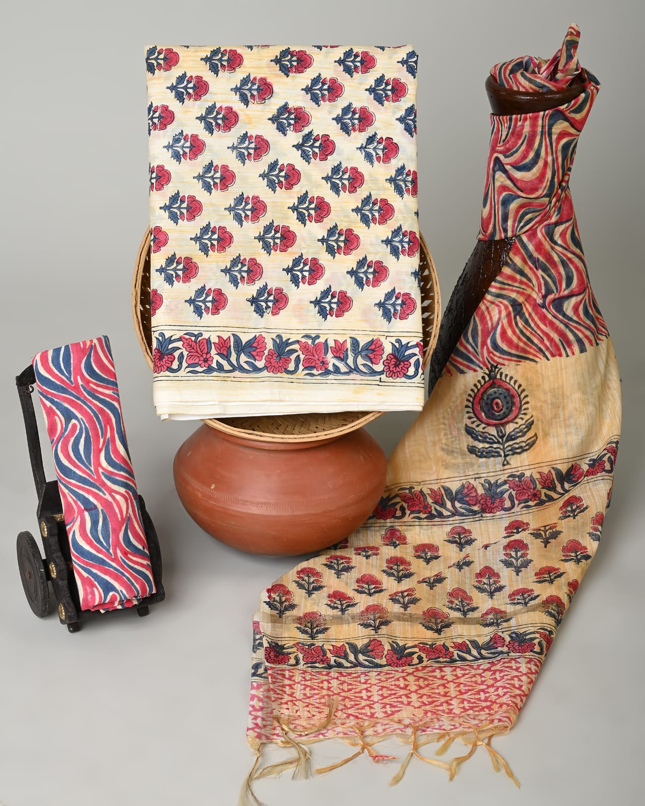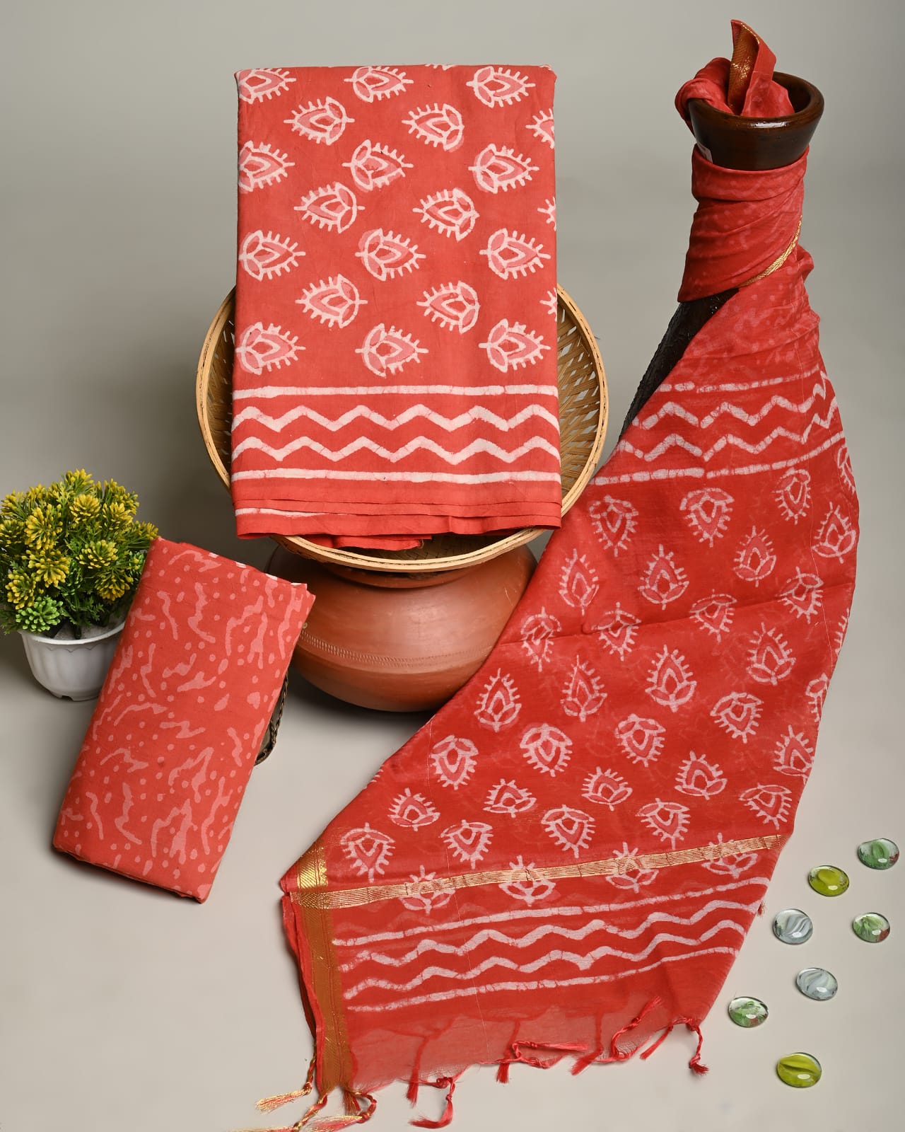 Cotton Dress Material with Chanderi Dupatta –3pc Wholesale Handblock Printed MOQ 6 Pcs Assorted Designs | Fabtexs