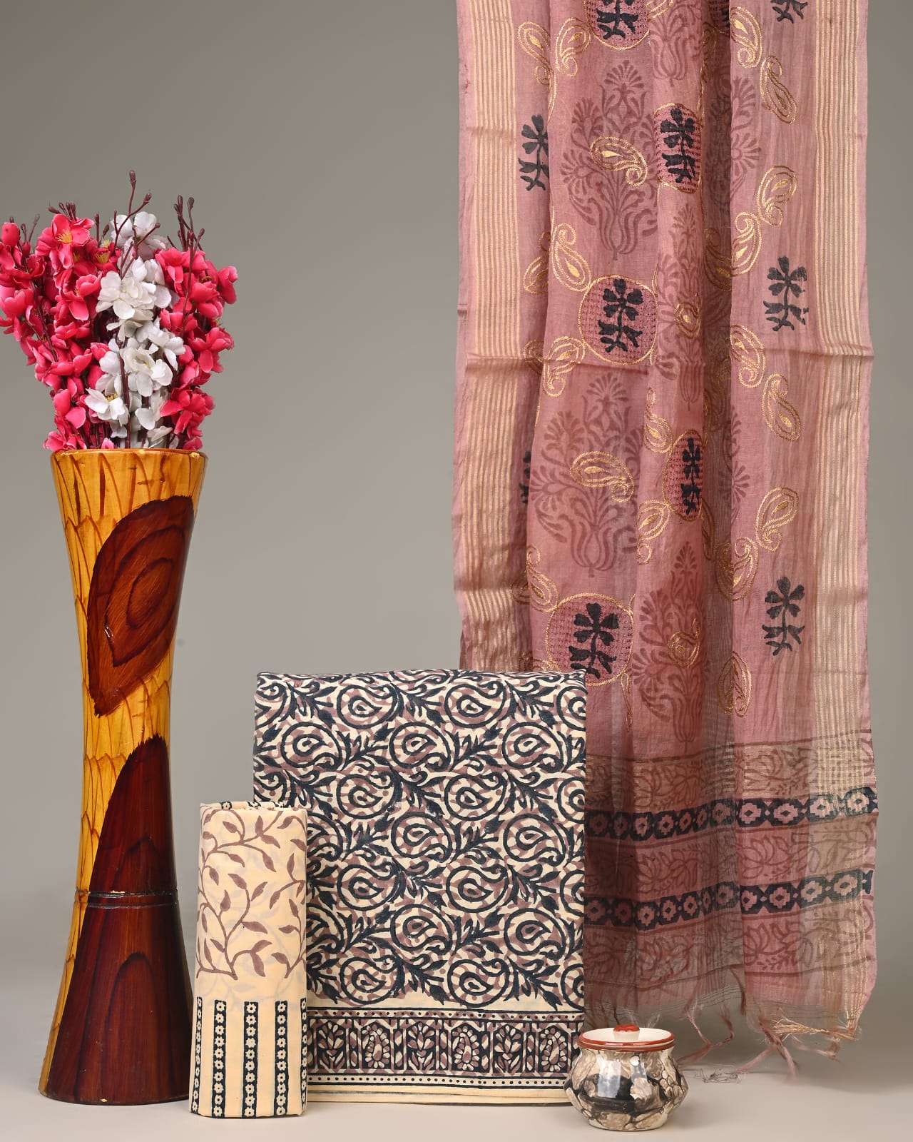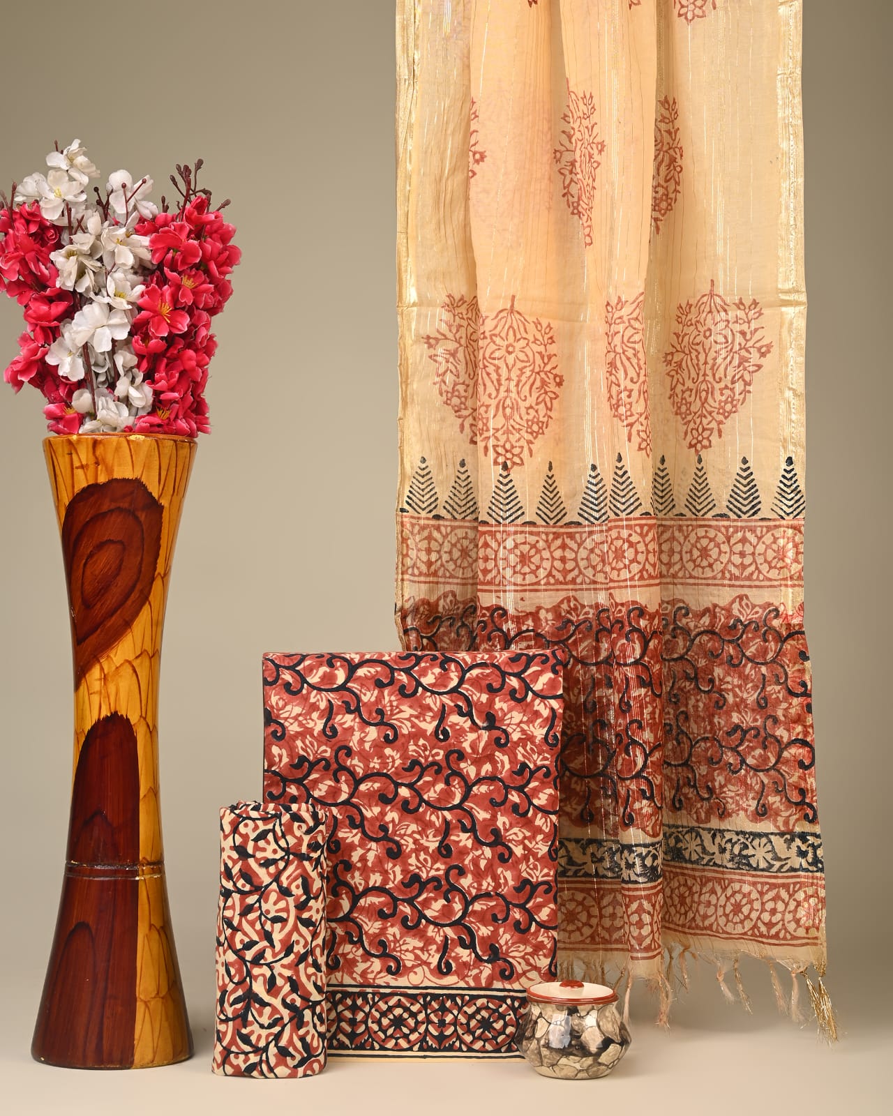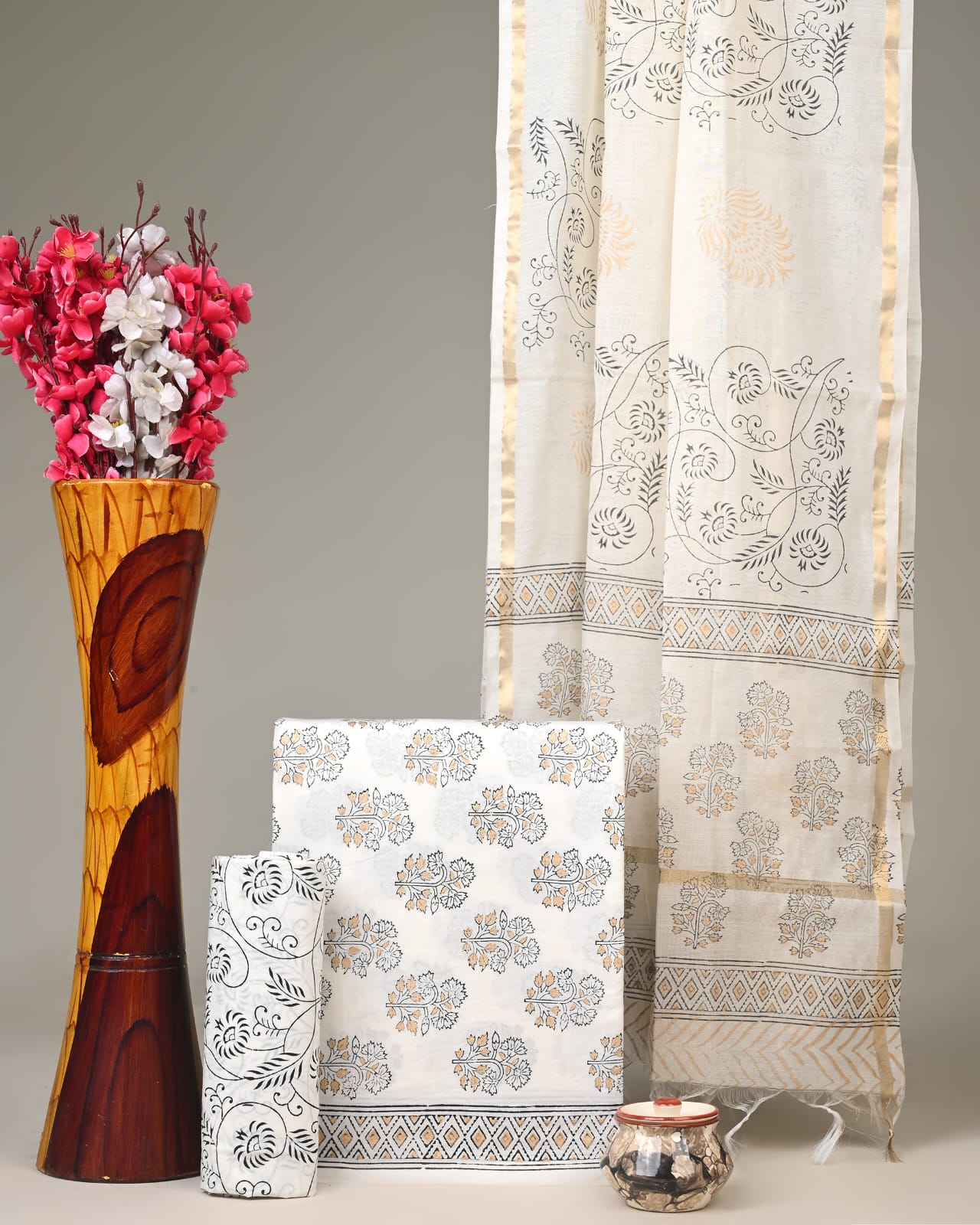 Chanderi Silk Suit Material Wholesale – Handblock Printed Cotton with Silk Dupatta